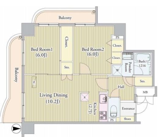 | 間取り | 2LDK | 専有面積 | 59.39m2 |