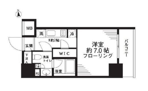 | 間取り | 1K+WIC | 専有面積 | 25.68m2 |
