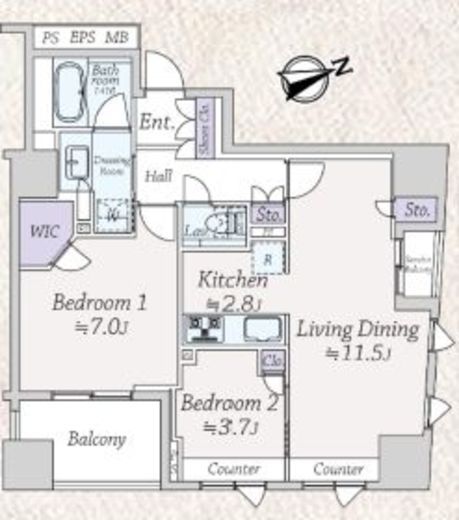 | 間取り | 2LDK+WIC | 面積 | 60.7m2 |