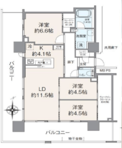 | 方角 | 南 | バルコニー面積 | 41.2m2 |