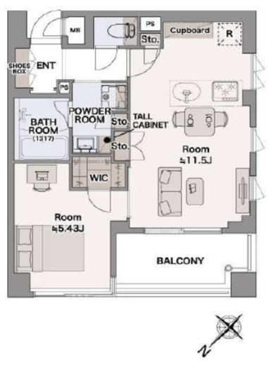 | 間取り | 1LDK+WIC | 面積 | 44.45m2 |