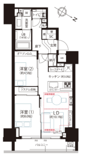 | 間取り | 2LDK | 専有面積 | 55.77m2 |