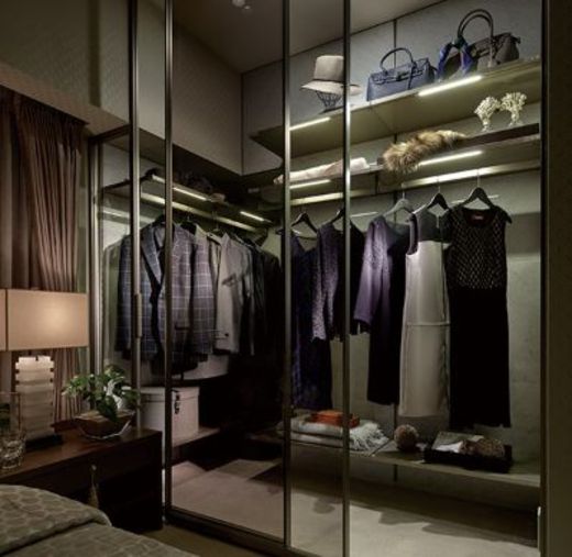 大容量のウォークインクローゼットや、ダブルボウル設計の洗面所のお部屋もございます。全邸南向き、角住戸プランで3面採光を実現したまさに最高級レジデンスです。