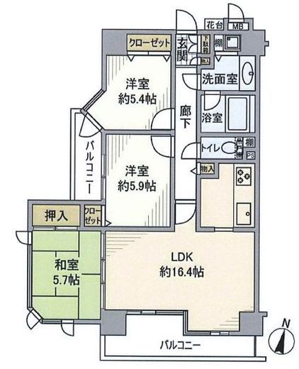 | 方角 | 南東 | バルコニー面積 | 11.46m2 |