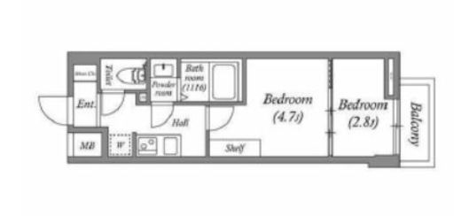| 間取り | 2K | 専有面積 | 25.09m2 |