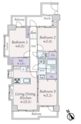 | 間取り | 3LDK+WIC | 面積 | 62.06m2 |