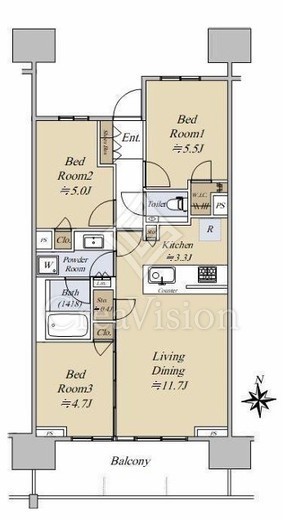 | 間取り | 3LDK+WIC | 専有面積 | 65.05m2 |