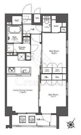 | 間取り | 2LDK+WIC+SIC | 専有面積 | 55.86m2 |