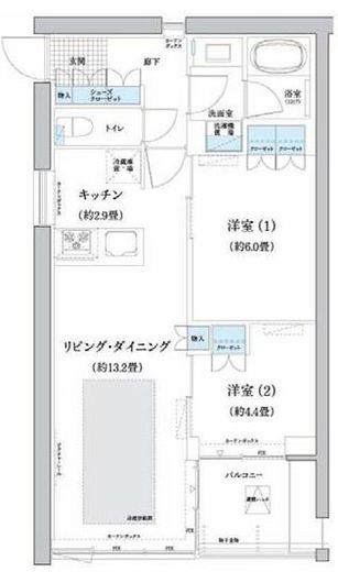 | 間取り | 2LDK | 専有面積 | 59.74m2 |