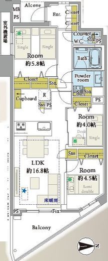 | 間取り | 3LDK | 専有面積 | 75.02m2 |
