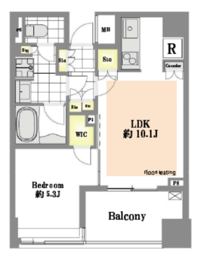 | 間取り | 1LDK+WIC | 面積 | 38.41m2 |