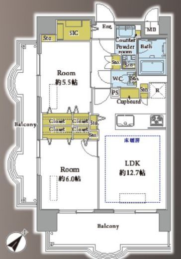 | 間取り | 2LDK+SIC | 面積 | 56.66m2 |