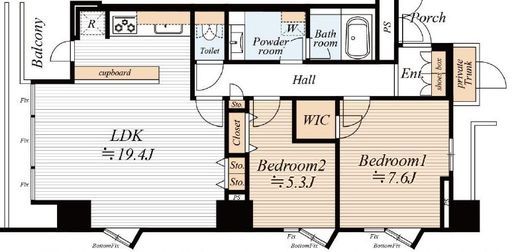 | 間取り | 2LDK+WIC | 面積 | 76.67m2 |