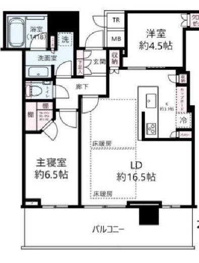 | 方角 | 西 | バルコニー面積 | 15.5m2 |
