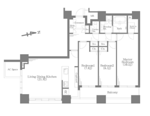 | 間取り | 3LDK+WIC | 面積 | 102.66m2 |