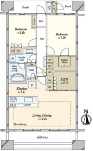 | 間取り | 2SLDK | 専有面積 | 74.17m2 |