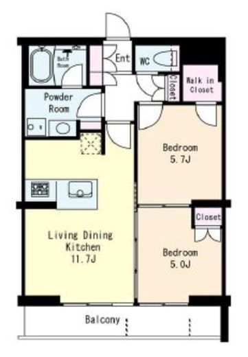 間取り | 2LDK+WIC | 専有面積 | 52.71m2 |