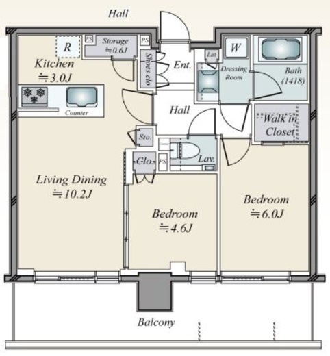 | 間取り | 2LDK+WIC | 専有面積 | 55.32m2 |