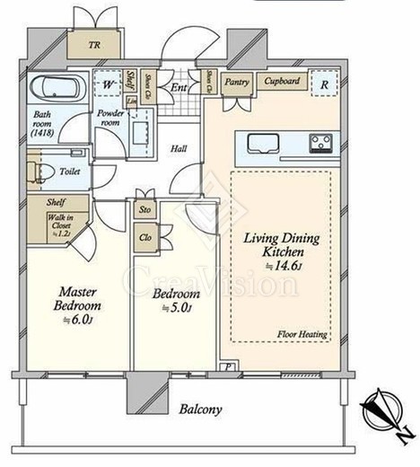 | 間取り | 2LDK+WIC | 専有面積 | 61.18m2 |