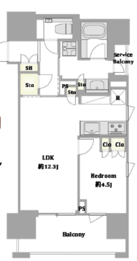 | 間取り | 1LDK | 面積 | 44.5m2 |