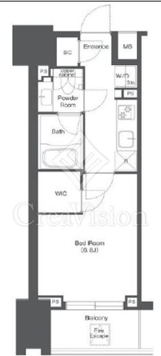 | 間取り | 1K+WIC+SIC | 専有面積 | 25.35m2 |