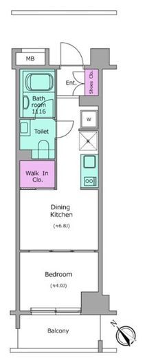 | 間取り | 1K+WIC | 専有面積 | 26.4m2 |