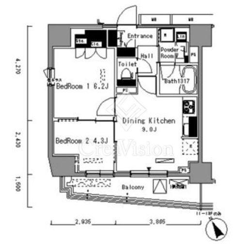 | 間取り | 2DK | 専有面積 | 45.47m2 |