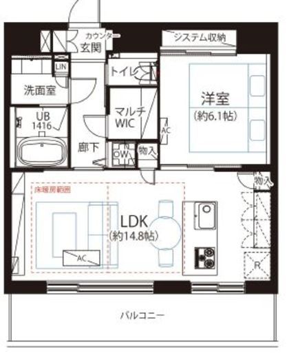 | 間取り | 1LDK+WIC | 面積 | 53.1m2 |