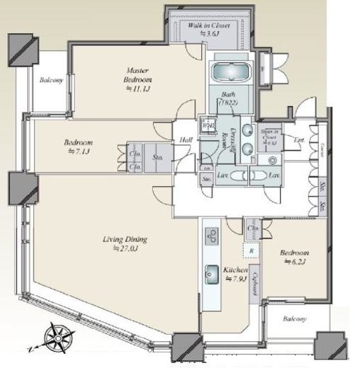 間取り | 3LDK+WIC+SIC | 専有面積 | 138.26m2 |