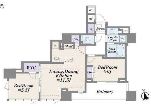 | 間取り | 2LDK+WIC+SIC | 面積 | 63.34m2 |