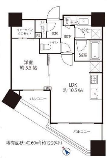間取り | 1LDK | 専有面積 | 40.6m2 |