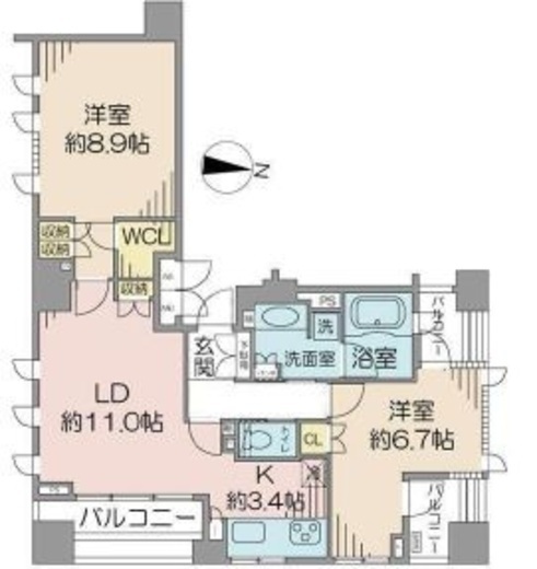 | 間取り | 2LDK+WIC | 専有面積 | 69.85m2 |