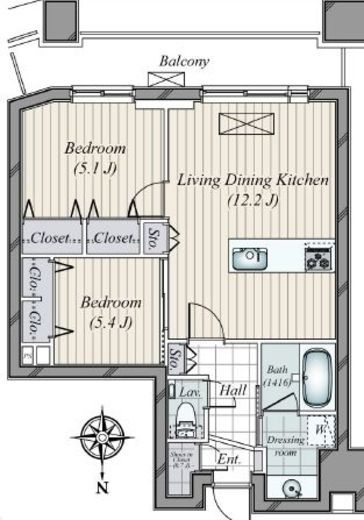 | 間取り | 2LDK | 専有面積 | 55.16m2 |