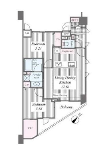 | 間取り | 2LDK+WIC | 専有面積 | 53.17m2 |