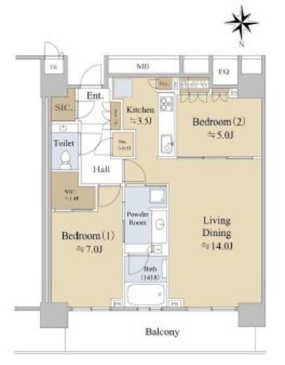 間取り 2LDK+WIC+SIC 専有面積 70.72m2
