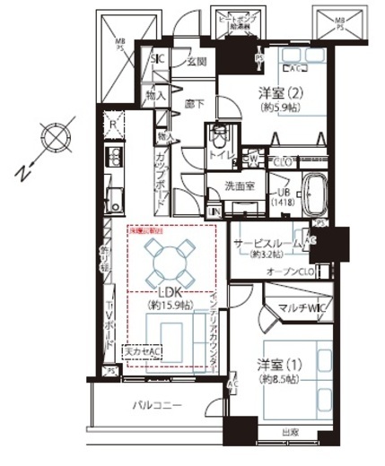 | 方角 | 北西 | バルコニー面積 | 6.48m2 |