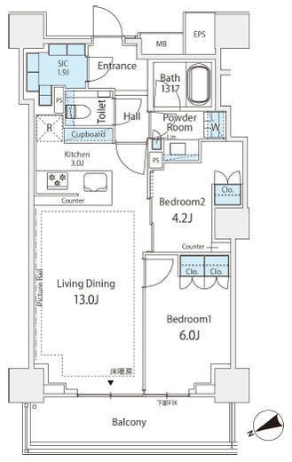 | 間取り | 2LDK+SIC | 専有面積 | 59.97m2 |