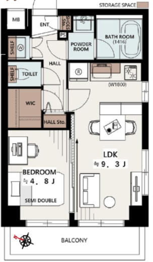 | 間取り | 1LDK+WIC | 面積 | 37.5m2 |
