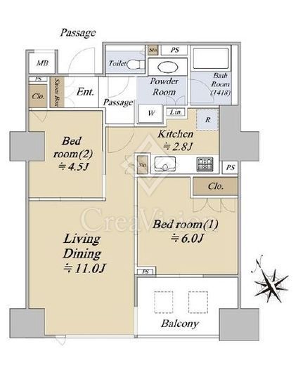 | 間取り | 2LDK | 専有面積 | 55.18m2 |