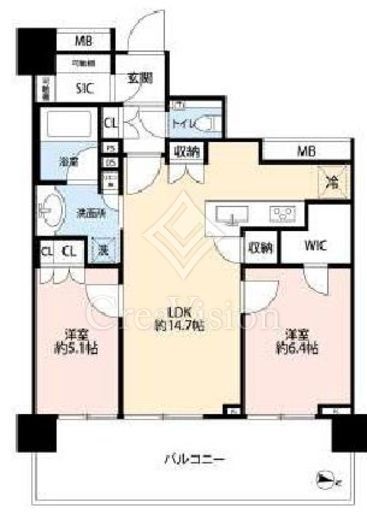 | 間取り | 2LDK+WIC+SIC | 面積 | 62.39m2 |