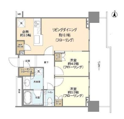 | 間取り | 2LDK | 専有面積 | 58.46m2 |