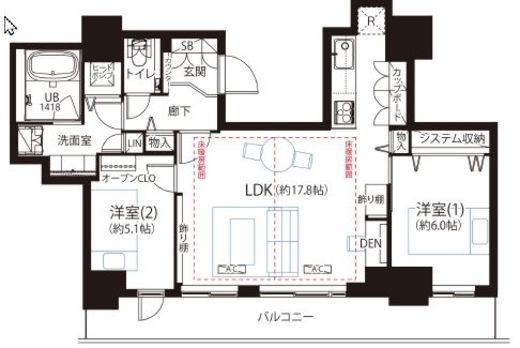 | 間取り | 2LDK | 専有面積 | 68.44m2 |