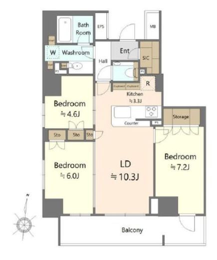 | 間取り | 3LDK+SIC | 専有面積 | 70.12m2 |